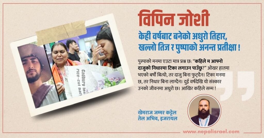 नेपाल इजरायल डट कम (इजरायल) । हमासको कब्जाबाट फिर्ता गरिएको नेपाली विद्यार्थी विपिन जोशीको शव फरेन्सिक परीक्षणका लागि इजरायलको अबु काबिर फरेन्सिक इन्स्टिच्युट, तेल अविभमा…
